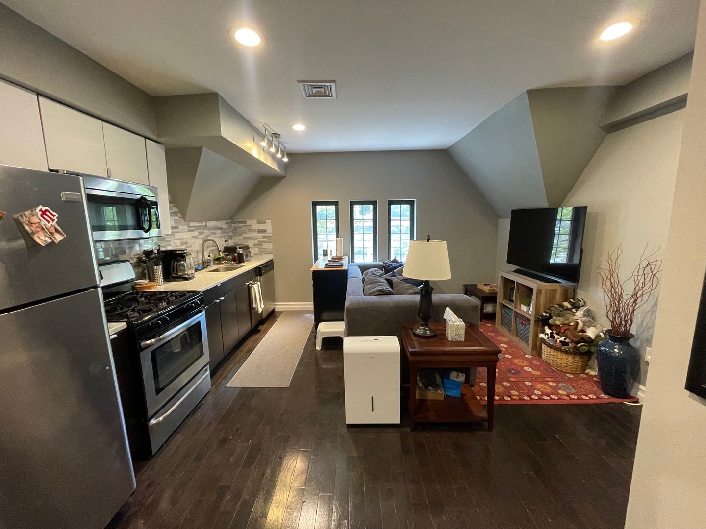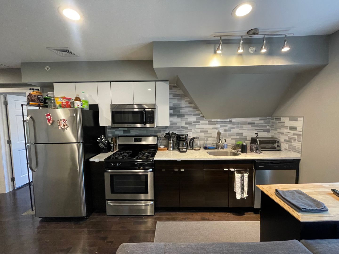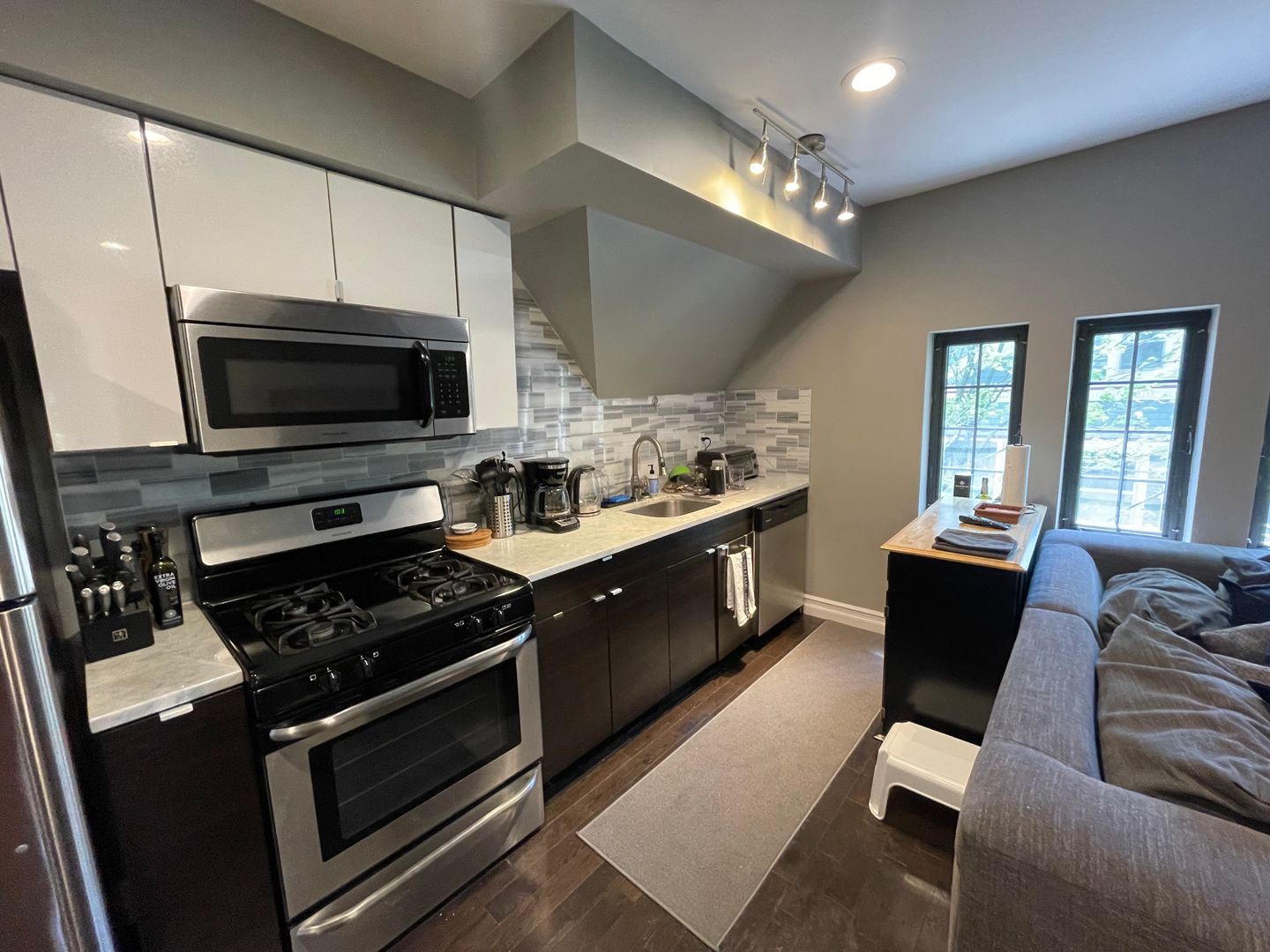 - Kitchen features: stainless steel appliances, dishwasher, microwave, gas stove, and refrigerator