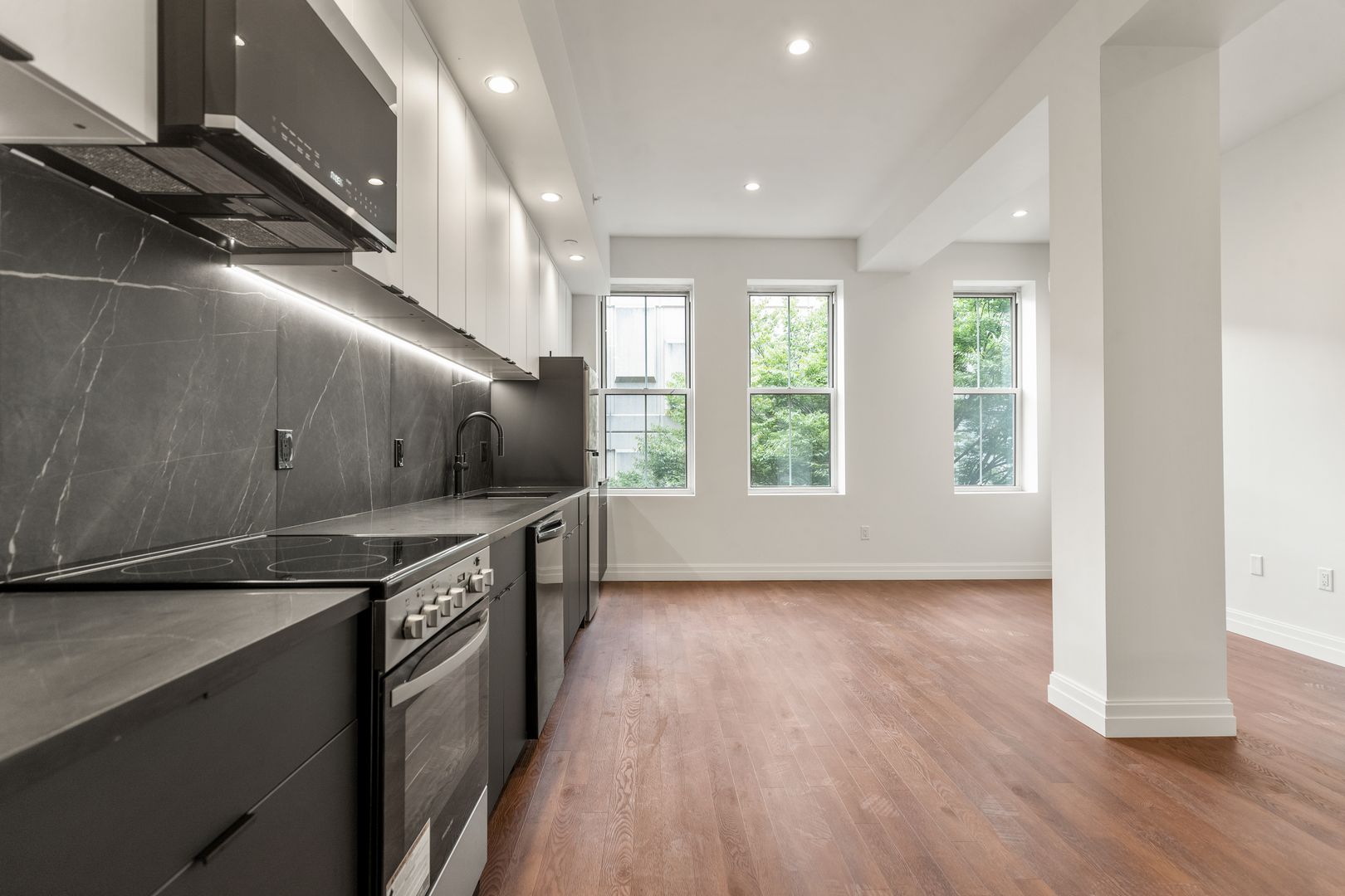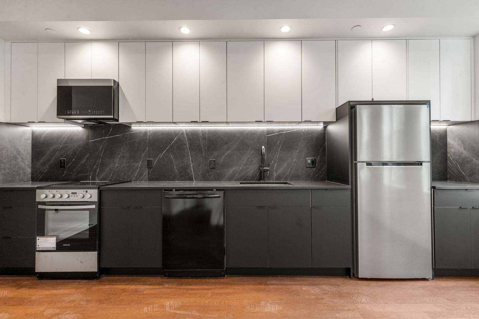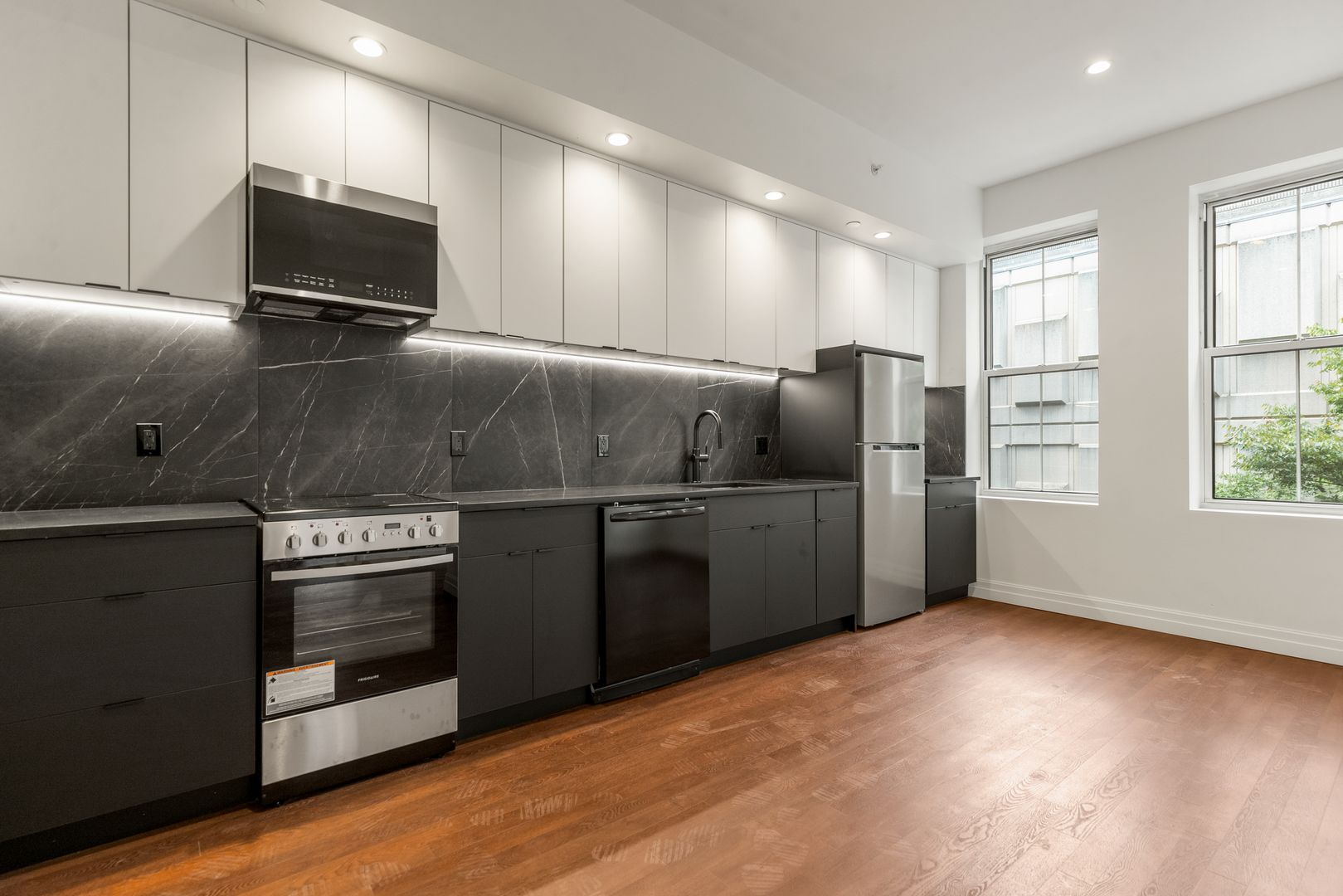 - Brand new stainless steel appliances including a dishwasher and a microwave